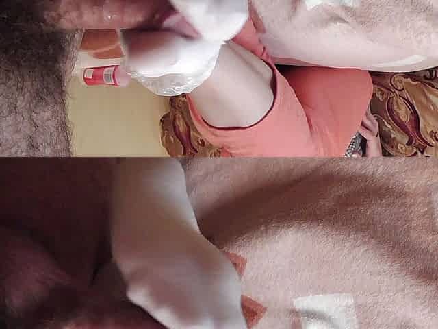 Gentle blowjob, hot ride on his dick and Sockjob in white frilly socks
