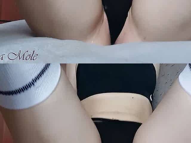 Socks girl masturbates her pussy until she orgasm!