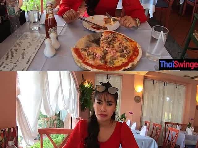 Breasty Oriental amateur GF ramrod sucking and shlong riding after a pizza lunch