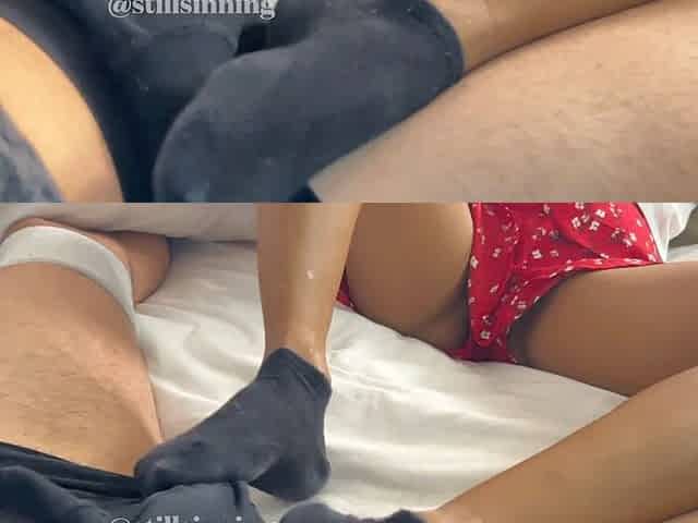 My Red Toes Need Cum!!! Converse Shoejob And Footjob With Holes In Socks