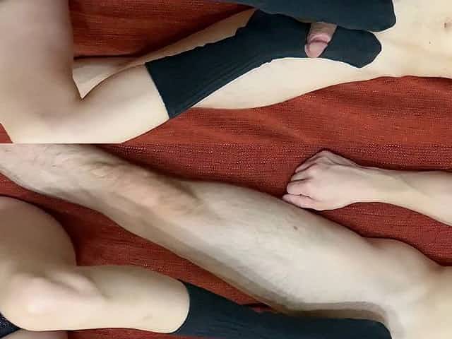 Footjob And Wanking In White Socks Cumshot On Socks
