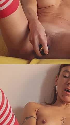 Brunette girl plays with her pussy using a toy