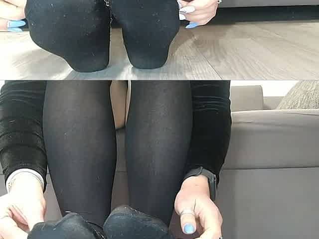 For socks lovers out there. See my feet in Ebony Socks trample dong and balls.