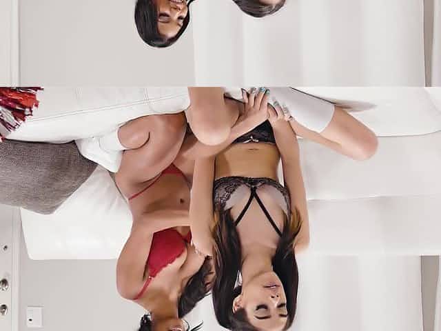 Amazing lesbian threesome with Noelle Easton and her room-mates