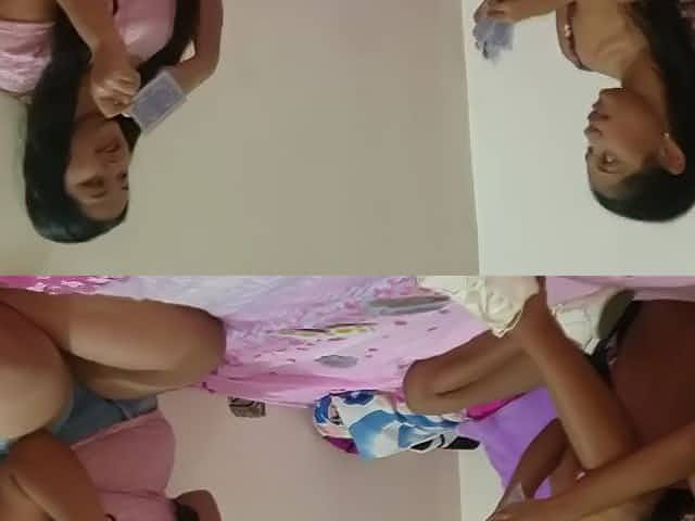 Girl wearing riding the tail of her boyfriend socks
