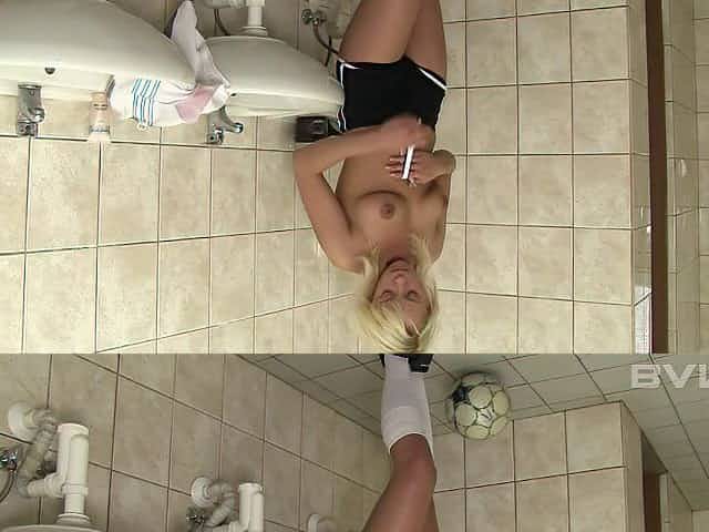 Amateur blonde model prepares her ass with a dildo for anal sex