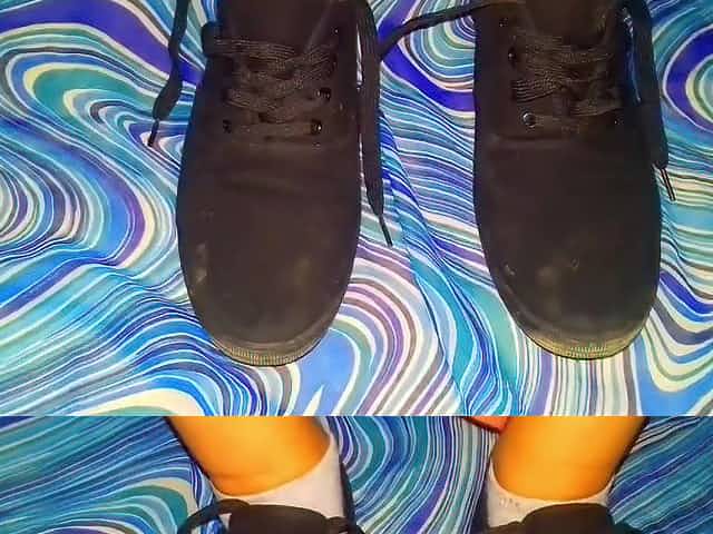 Sockjob with sporty socks after running + Sneaker shoejob and shoefuck