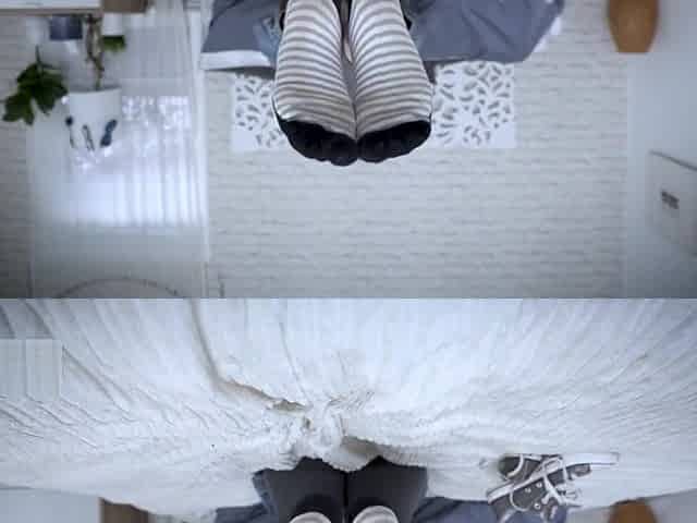 Hot cheerleader relaxes in bed and talks about her white socks worn 1 day