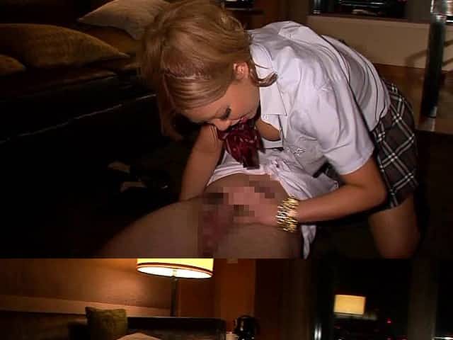 She tries on her new uniform then lifts up her skirt and gets fucked