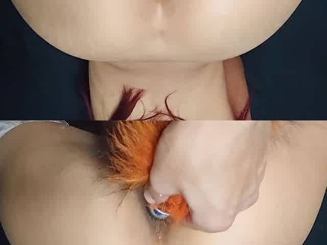 Cute transgirl pulls down her pants and screws a vibrator until that babe cums