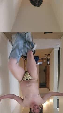 A hot girl in a skirt is having fun with someone in Funky Town
