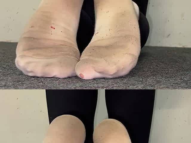 Secret Footjob beneath cover in smelly nylonsocks