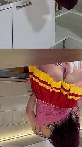 Sexy Naked Stepmom in the Kitchen Amateur Wife Does Housework Naked.