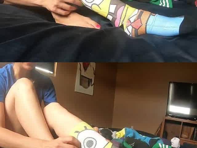 Trying on different socks, tickling and foot worship