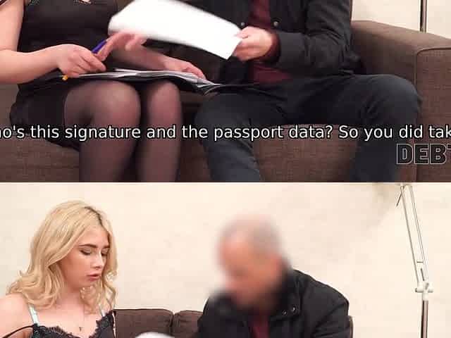 Debt4k. Cute hairdresser took a debt for sofa and now needs to pay for it