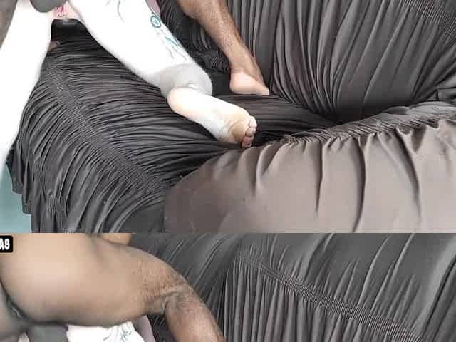 Skinny Ass Chick Getting Interracially Drilled By A Big Black Stud On The Sofa