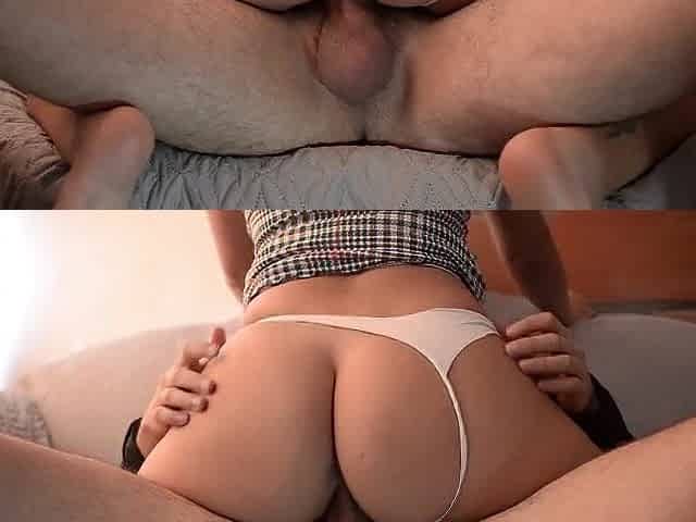 Brunette teenager blows XXX lover before big-ass sex on the sofa - hottest porn!
