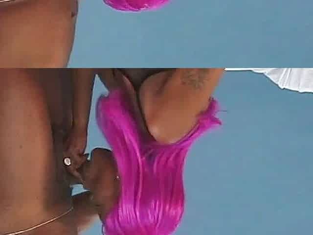 Horny ebony lays back and gets pussy licked by a girl on the sofa