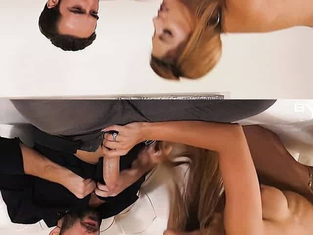 Two hot babes invite two horny guys for a wild group sex party