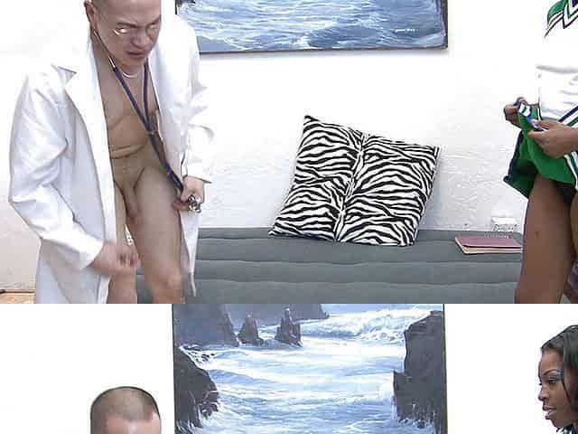 Black dwarf with a huge tool fucks ebony BBW on the sofa
