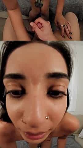 Avid! My stepbrother cum on my face when see a film in the sofa