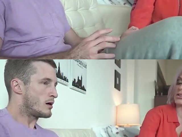 Good looking Ryaan Reynolds moans while riding a big dick on the sofa