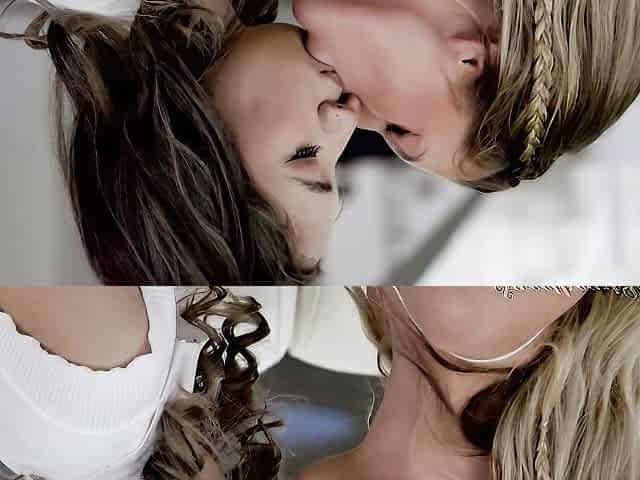 Erotic Kimora Quin and Addison Vodka at kissing scene