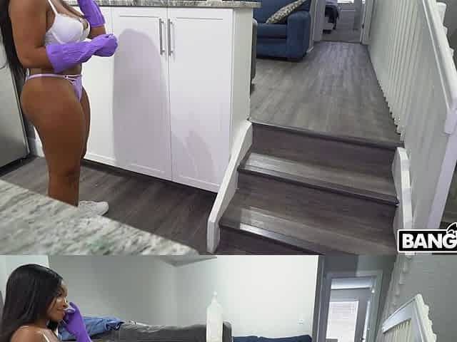 Maid Lena Coxx cleans the house and shows off her amazing ass