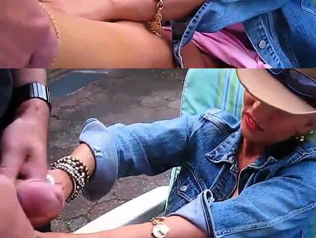 Well-Endowed Blonde Pleasures a Man Outdoors