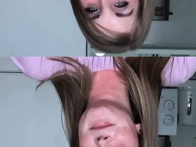 Pale Small Boobs Bob Haircut Blonde Doing Her Makeup in Front of the Mirror