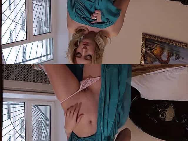Blonde lets you watch her take off her panties and bra and show off those huge tits
