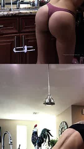 Blonde cumshot amateur MILF POV jerking in the kitchen