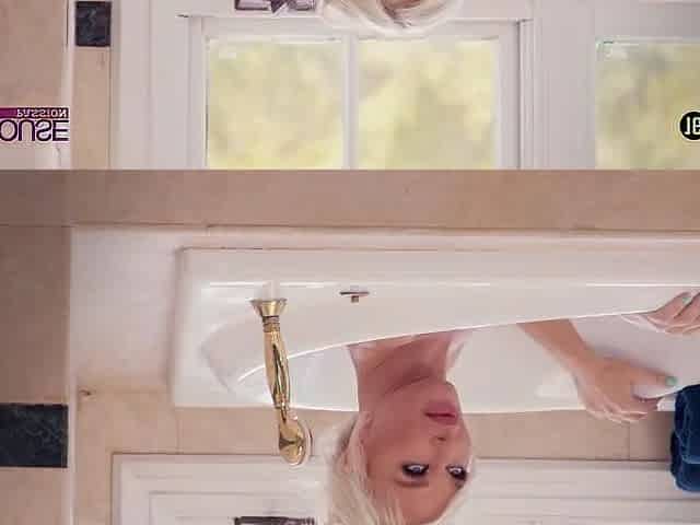Gorgeous blonde strips off for camera in a POV