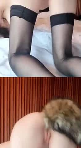rubbing my wet slit with a plugged ass