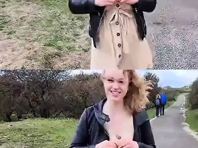 Big-Titted Amateur Girl Masturbates Outdoors on Webcam