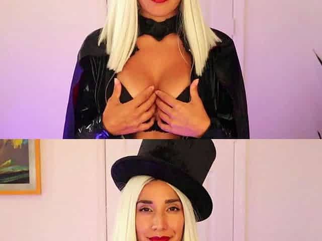 Concupiscent cosplayer clothed as a devil makes u cum with feet