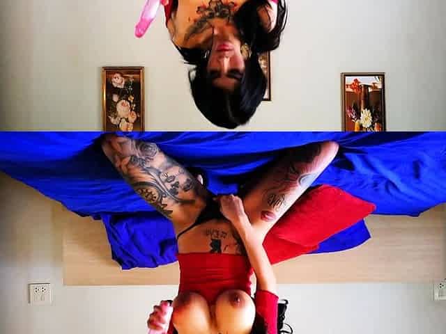 "Adult cinematography: red costume, heels, music, headphones… and PH’s finest BOOM ever."