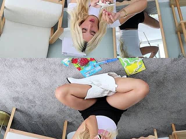Horny blonde with glasses and pigtails ride dildo like a pro