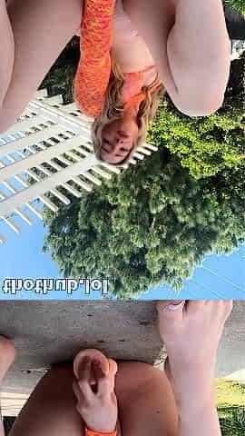 Hot blond taking a large sextoy poolside outdoors ????