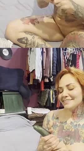 Tattooed Mature Slut Stuffing Pussy with Vibrating Toys