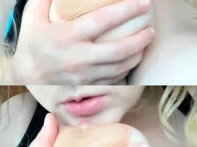 Blonde in Stockings Fists Wet Pussy with Vibrator