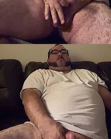 Single corpulent chap undressing touching masturbating rubbing edging groaning tiny knob
