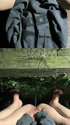 Sweetheart widens vagina open and squats to urinate outside