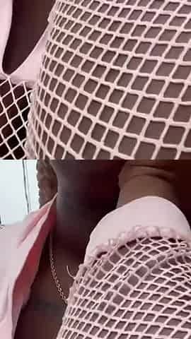 Walking Around in Fishnet Dress Fucking My Pussy on Public Staircase