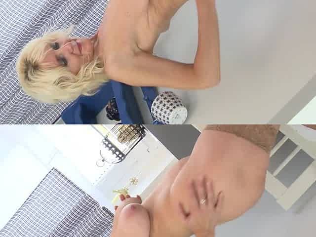 Busty Blonde MILF Sucks Big Cock and Fingers to Orgasm