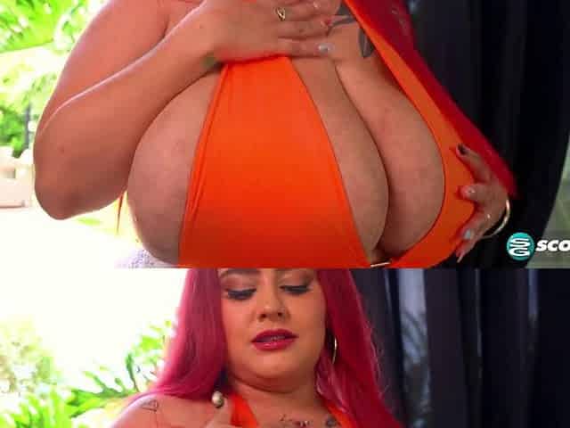 Hot Naked Brunette With Big Oily Tits Jerks Off A Pink Cock