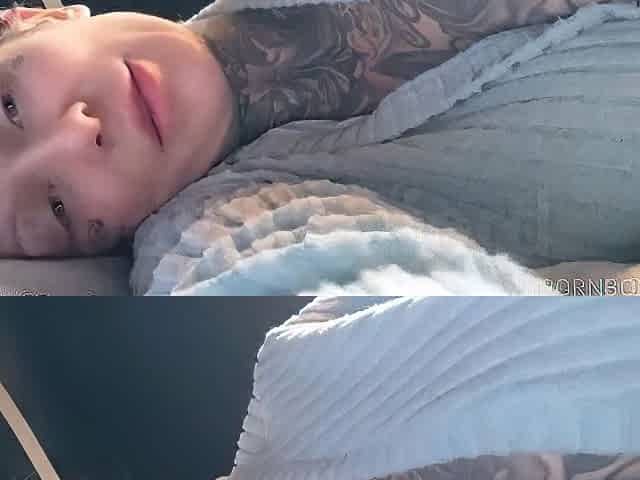 Blonde Tattooed Babe Orgasms Passionately on Webcam