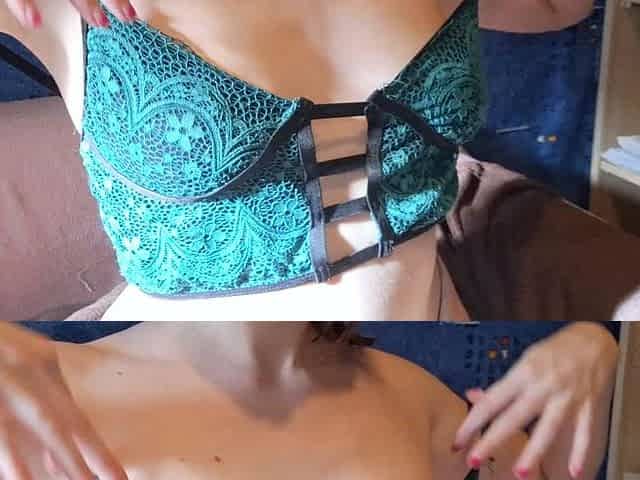 Tits Out Jeans Masturbation Selfie Cam - Amateur solo -