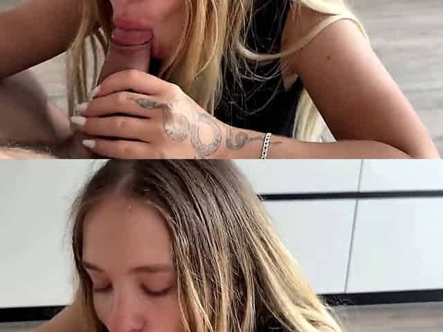 Close up with blonde hottie blowing a large dick