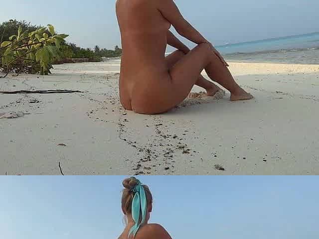 Blonde Solo Female's Nudist Walk on the Beach